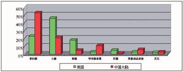 每個(gè)國(guó)家由于生活習(xí)慣、自然環(huán)境和一些遺傳因素的不同,各種疾病的發(fā)病率也有明顯的區(qū)別。這種區(qū)別就會(huì)導(dǎo)致臨床檢查項(xiàng)目的區(qū)別。由于臨床檢查項(xiàng)目的不同,所以臨床使用的設(shè)備也會(huì)有一定的差異。圖3所示中國(guó)大陸和美國(guó)臟器核醫(yī)學(xué)檢查比例有明顯區(qū)別。